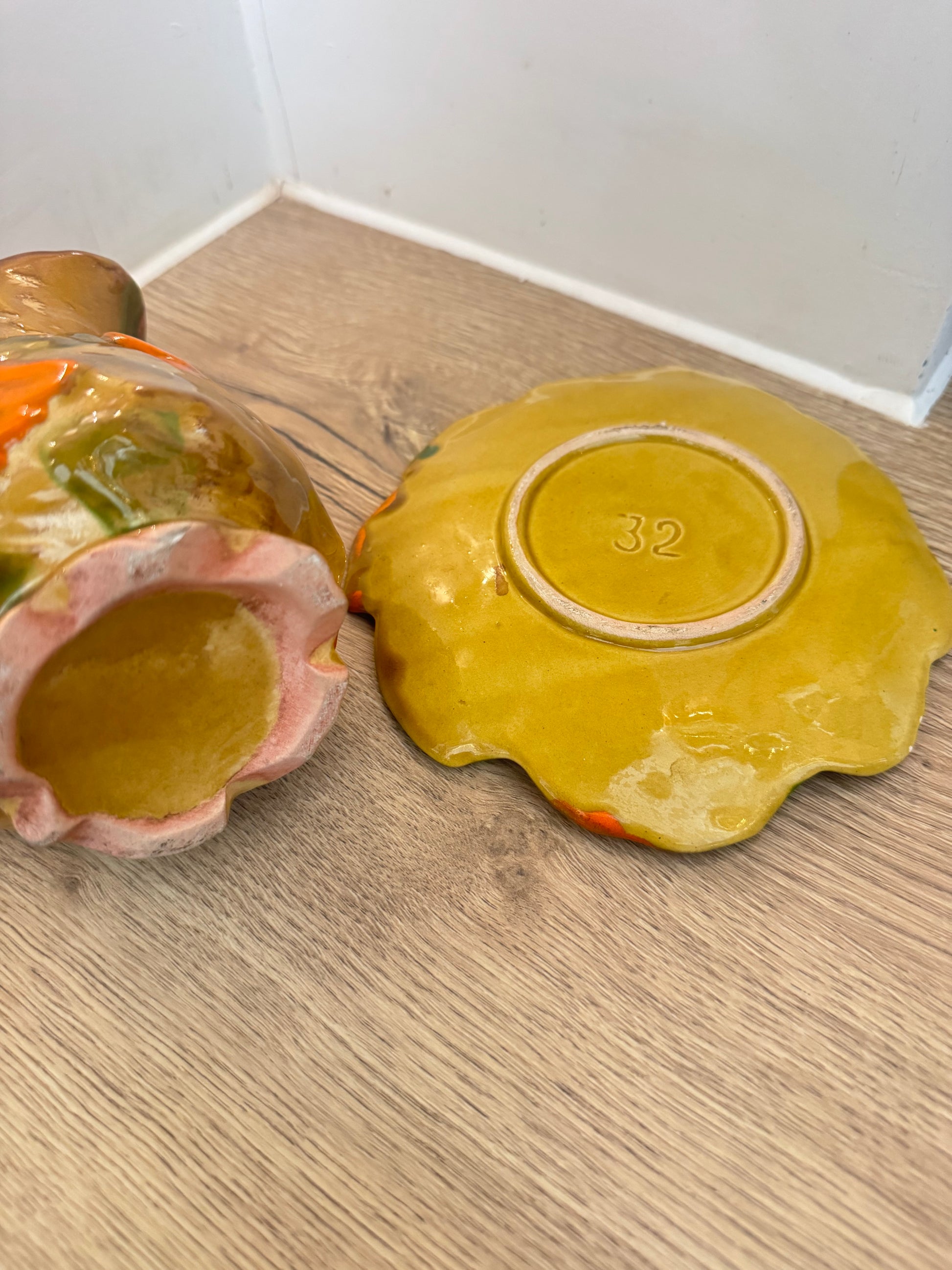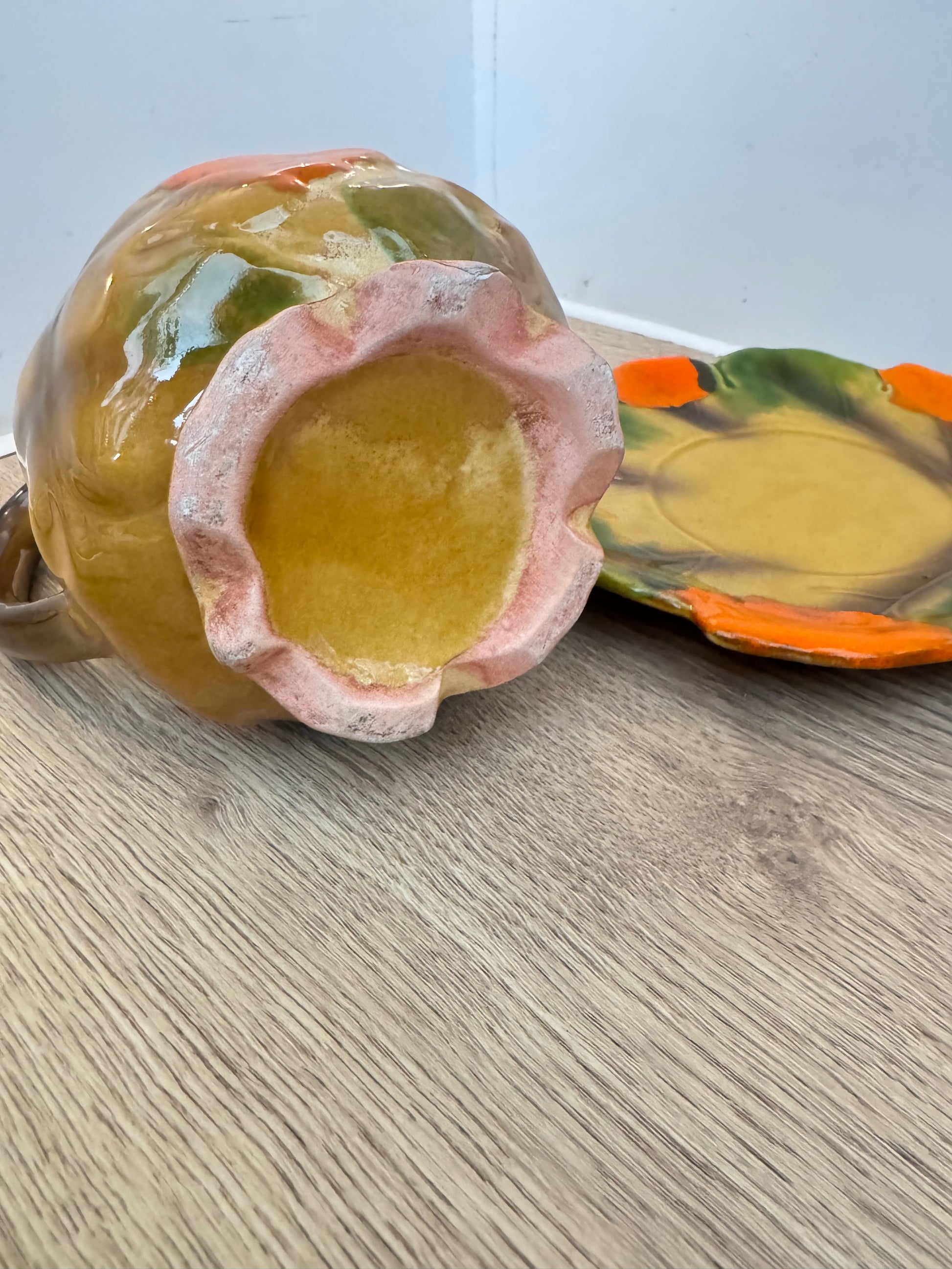 Autumn Leaves Ceramic Pitcher Jug with Saucer | Vintage Retro | Farmhouse Cottagecore |