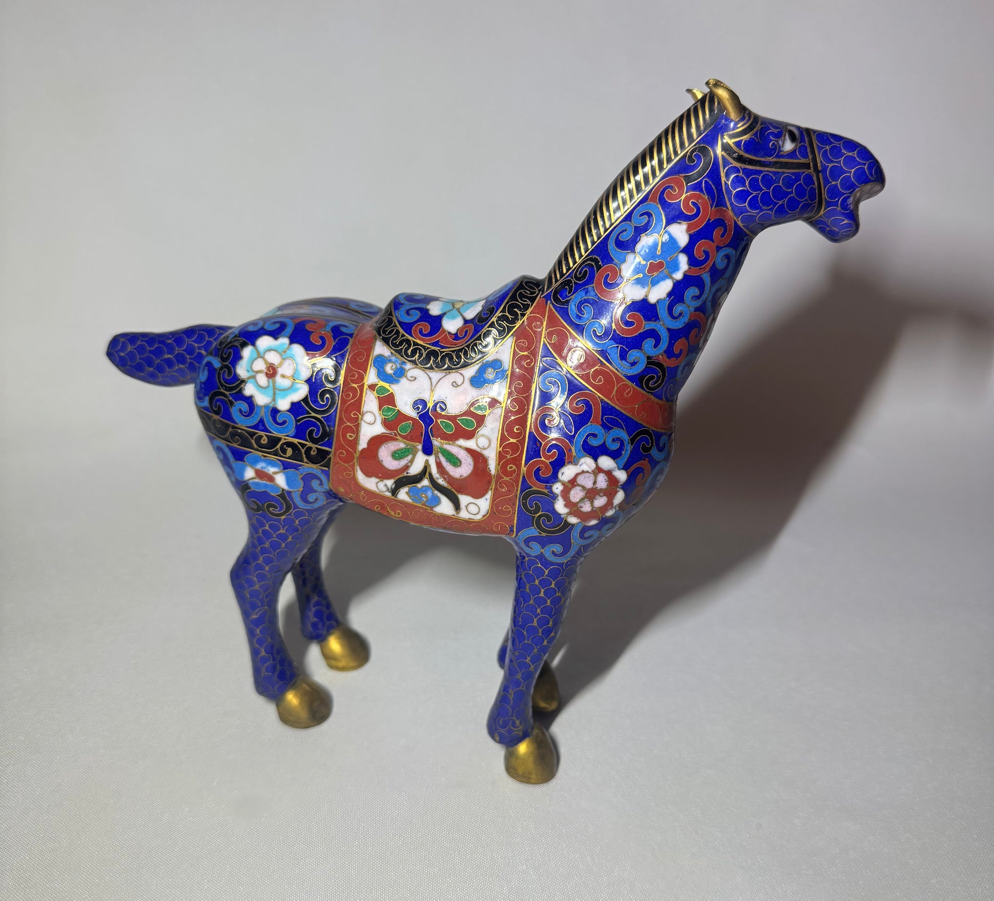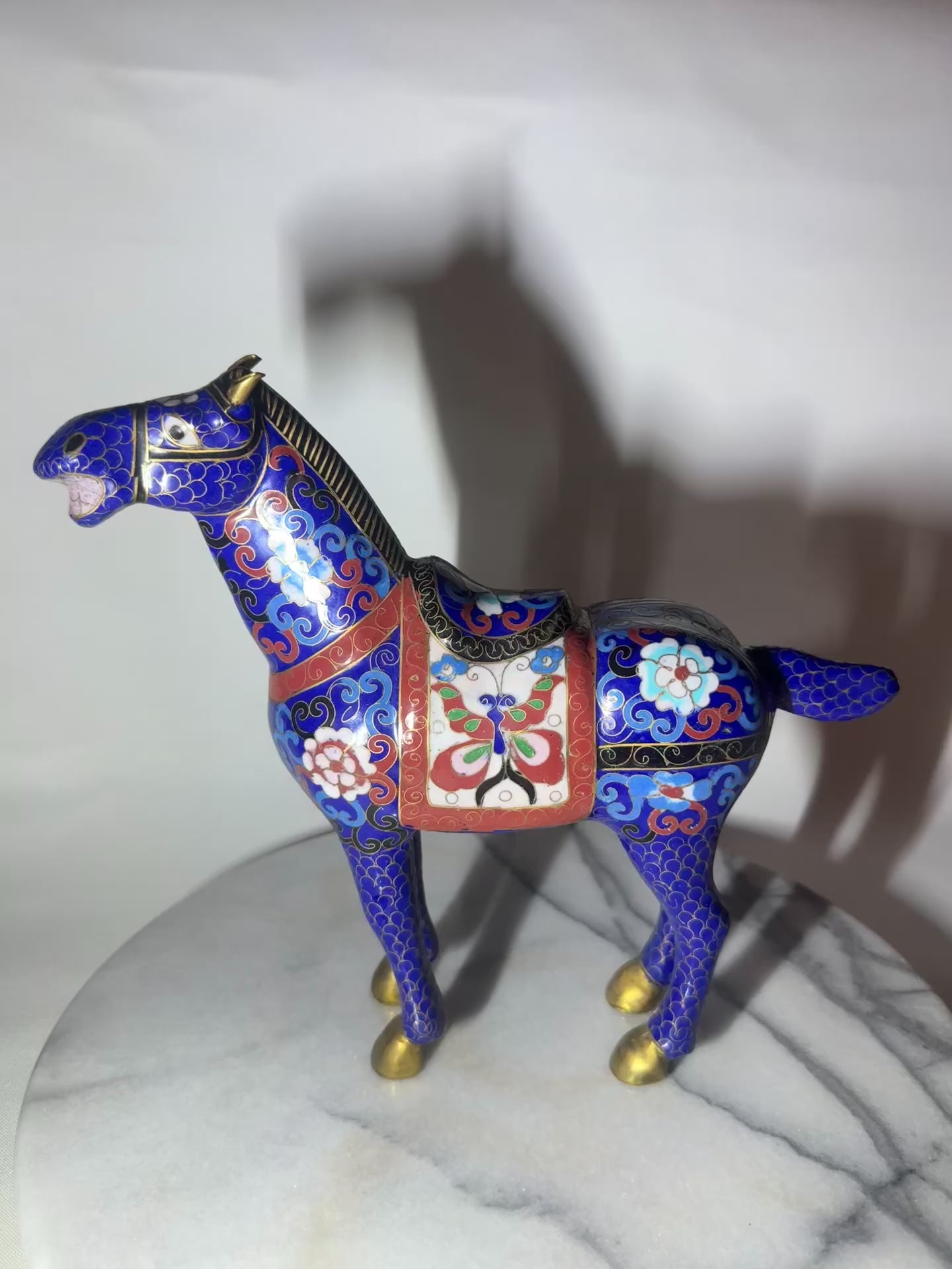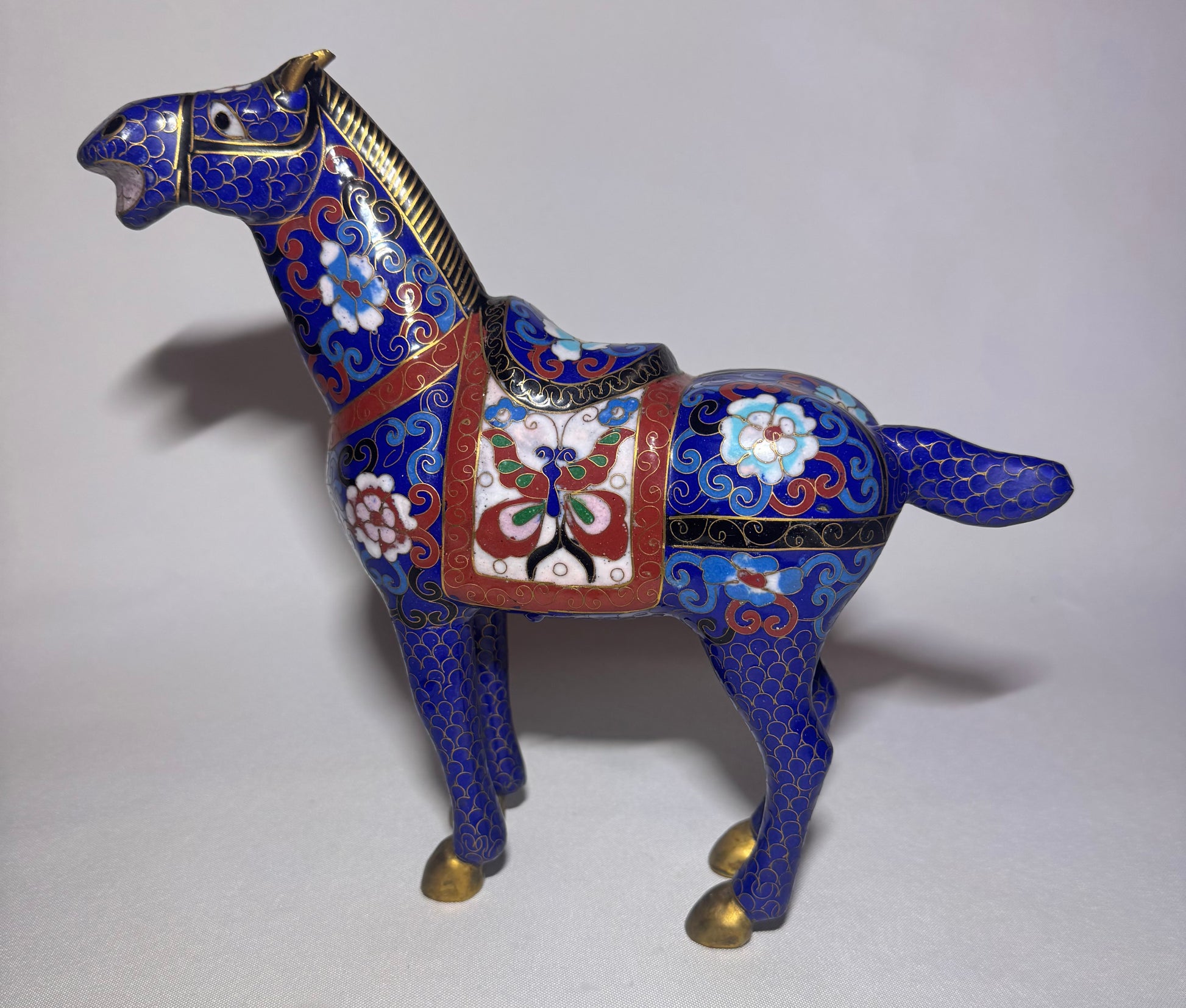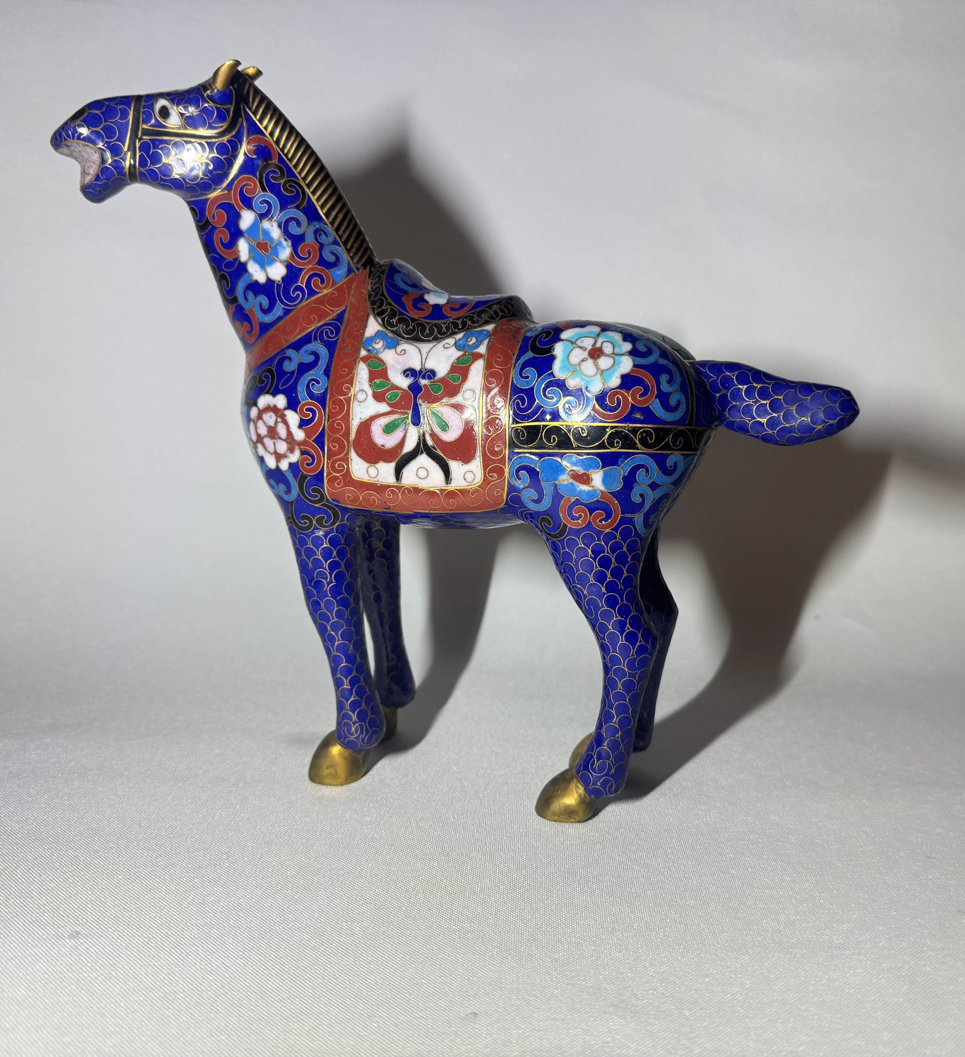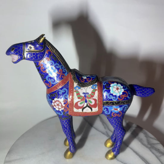 Blue Floral Cloisonné Horse