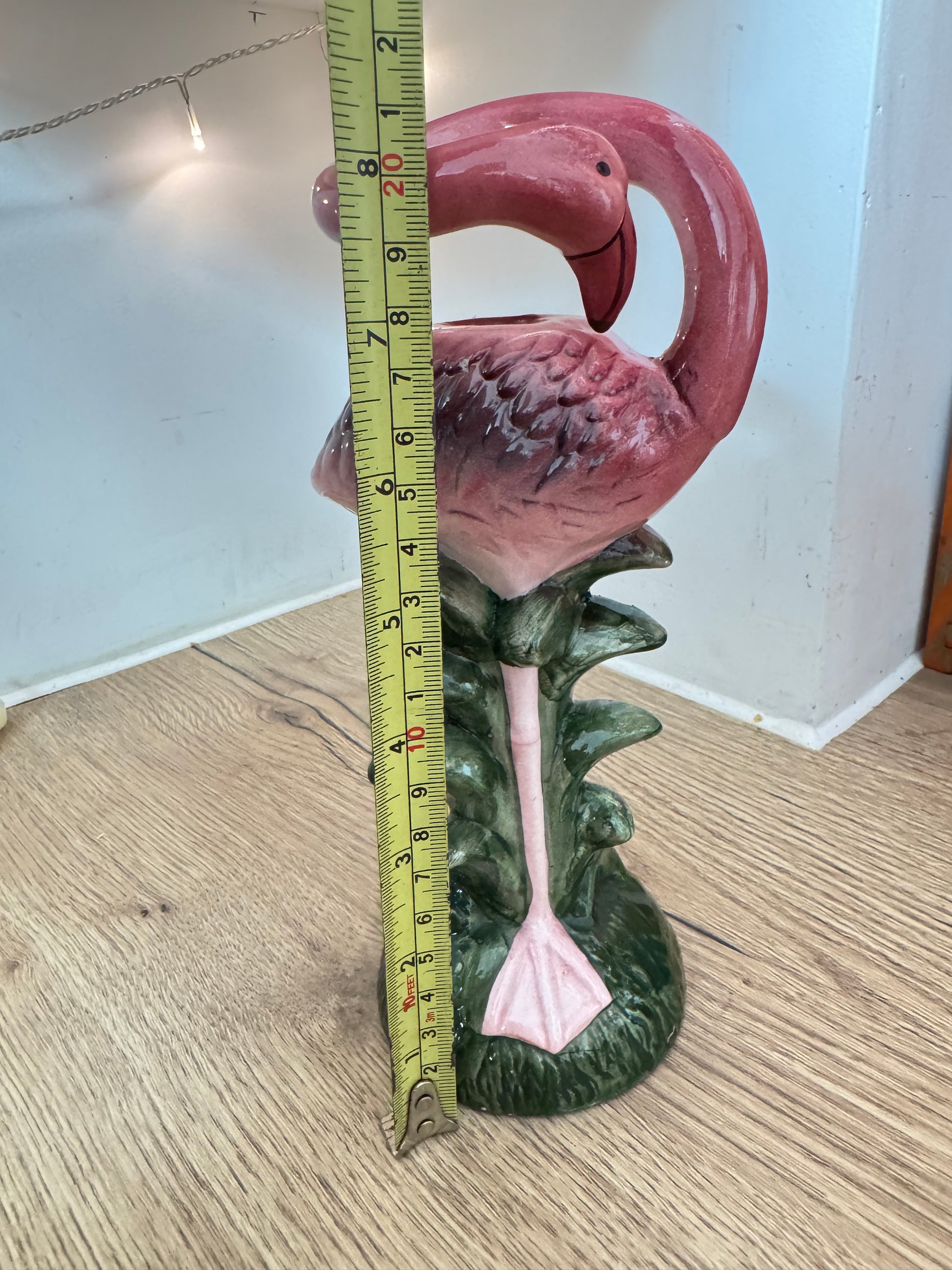 A quirky kitsch ceramic flamingo candle holder. In good vintage condition.