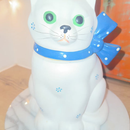 Ceramic White Cat Cookie Jar | Vintage Unique Quirky Kitsch |